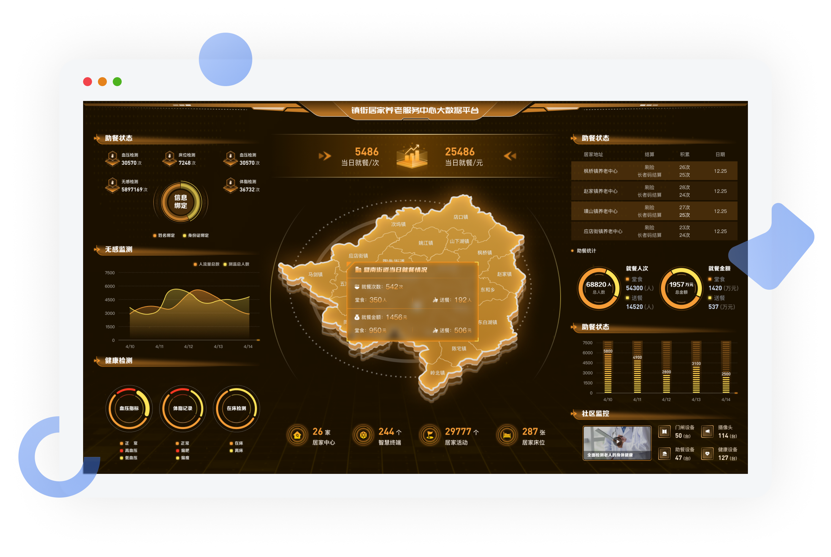 在政府推进“居家养老服务”的鼓励政策背景下,借助大数据处理和信息技术的优势以发展“智慧养老”作为实现高质量养老的突破口。 构建一个以社区居家老年群体为核心对象,以日间照料中心、社区服务为基点,以智能设备为辅助手段,为社区居家老人提供方便、快 捷、贴心的养老服务平台。