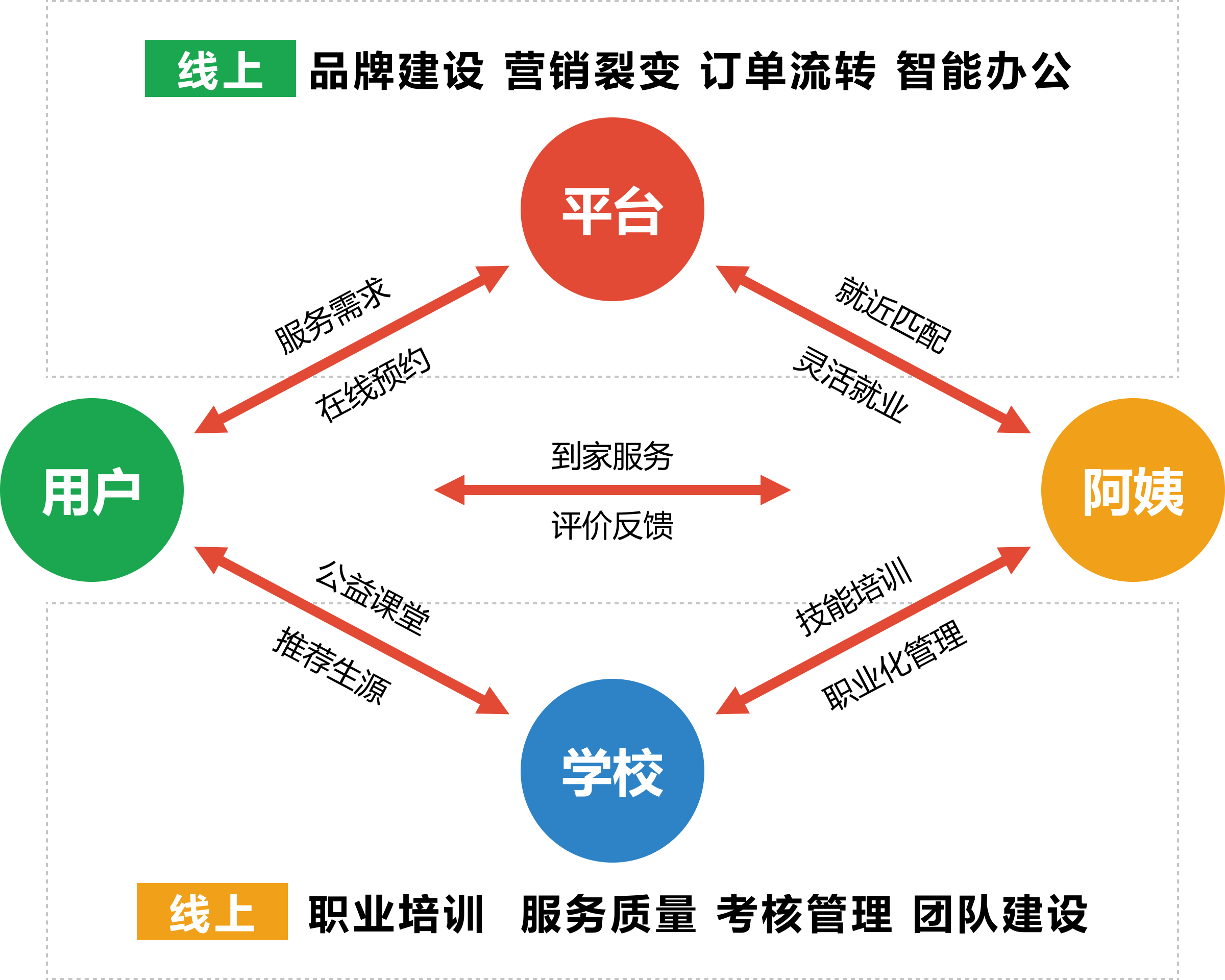 整合行业资源,线上连接用户侧与 服务侧,简化传统的服务预约流程 ,精准描述需求,降低交易成本, 提高服务效率。